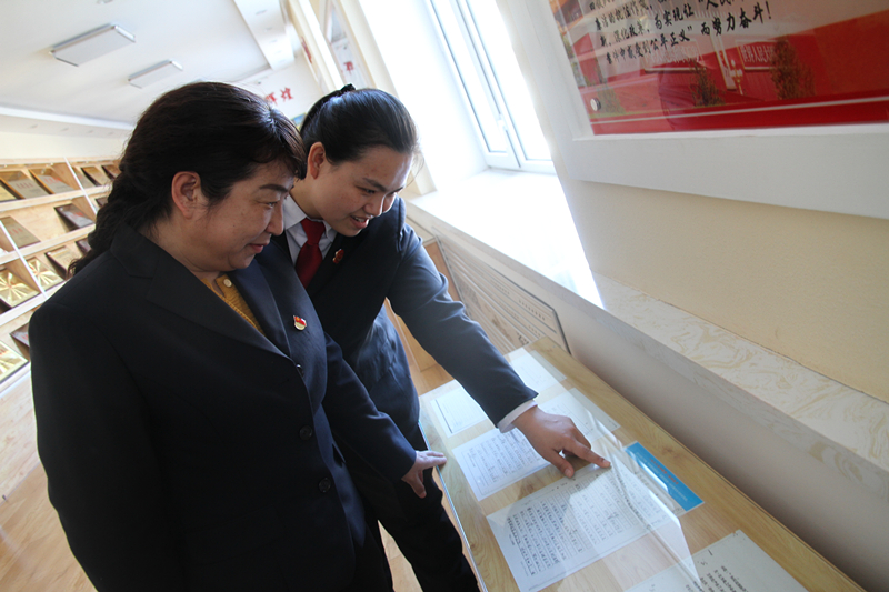 在参观中院荣誉室时,李秀芹说:“在这看到了大兴安岭地区中级人民法院一步一个脚印的发展步伐,看到了大兴安岭中院忠诚地履行着党、人民和国家赋予的职责,为辛勤工作的干警们点赞。”