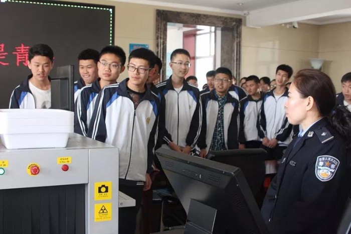 同学们一起参观安检流程