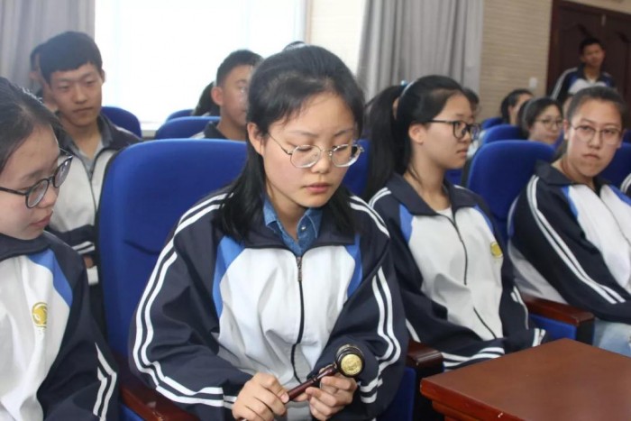 同学们坐上审判席,模拟法庭庭审,体验法庭的威严与神圣