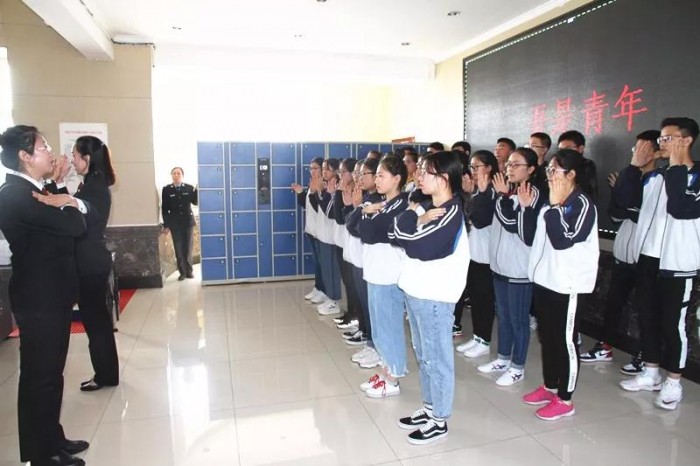 法院的小姐姐还教会了同学们“吾是青年”手势舞
