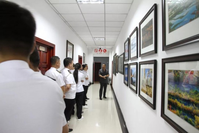 卫生局干部在讲解员的引领下,参观了地区法院安保监控中心、审判法庭、荣誉室、执行指挥中心、文化长廊等地,了解法院办公设施和文化建设等情况。