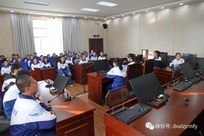 同学们积极参与模拟庭审活动,扮演庭审中的各个角色,审判长、审判员等,亲身感受一下庭审的具体流程。