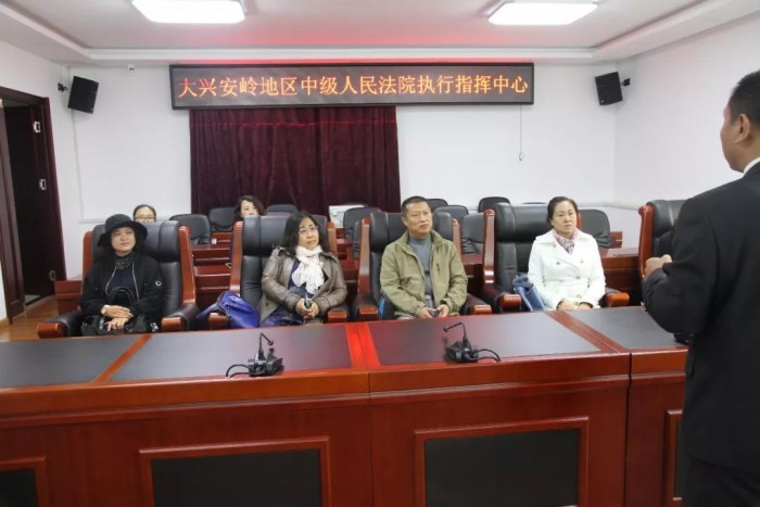 参观中,讲解人员向大家介绍了大兴安岭中院积极开展审判执行工作,加强窗口服务建设、优化营商环境、深化司法改革、强化司法公开力度、推进法治建设等方面的工作成果。