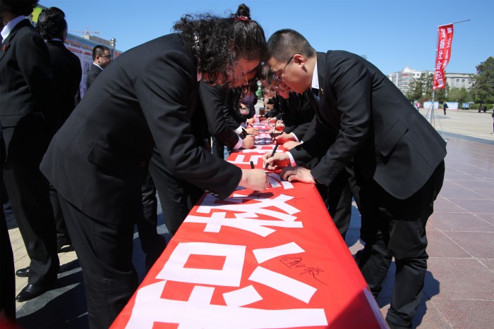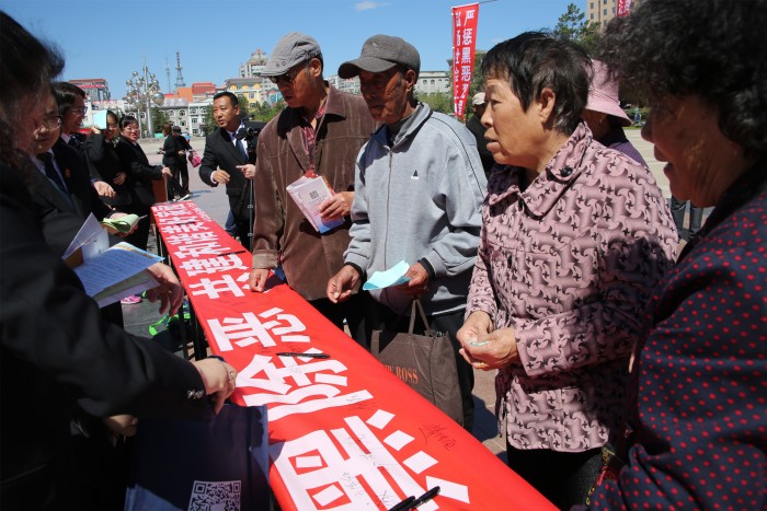 5月29日上午10时,大兴安岭地区两级法院同时开展以“强化审判职能,重拳出击、精准发力,坚决打赢扫黑除恶‘百日攻坚战’”为主题的扫黑除恶专项斗争集中宣传活动。