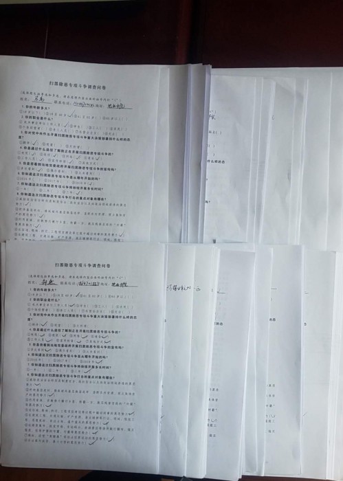 为深入推进扫黑除恶专项斗争,切实提高基层群众对扫黑除恶专项斗争及相关政策法规的认知度,充分调动人民群众同黑恶势力违法犯罪行为进行斗争的积极性,近日,大兴安岭地区中级人民法院组织两级法院干警开展中央扫黑除恶专项斗争问卷调查活动,向干警及其亲属发放中央扫黑除恶专项斗争调查问卷。