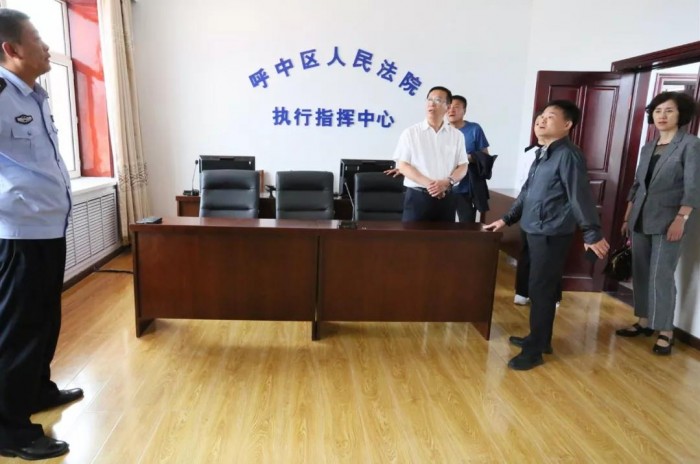 程显波一行参观了呼中区人民法院基础设施建设,详细了解了党建工作、队伍建设、案件质效、司法改革等工作开展情况。