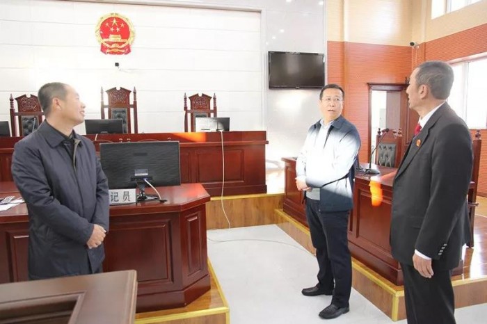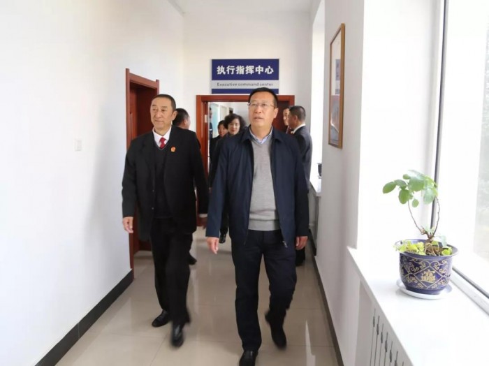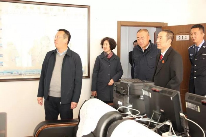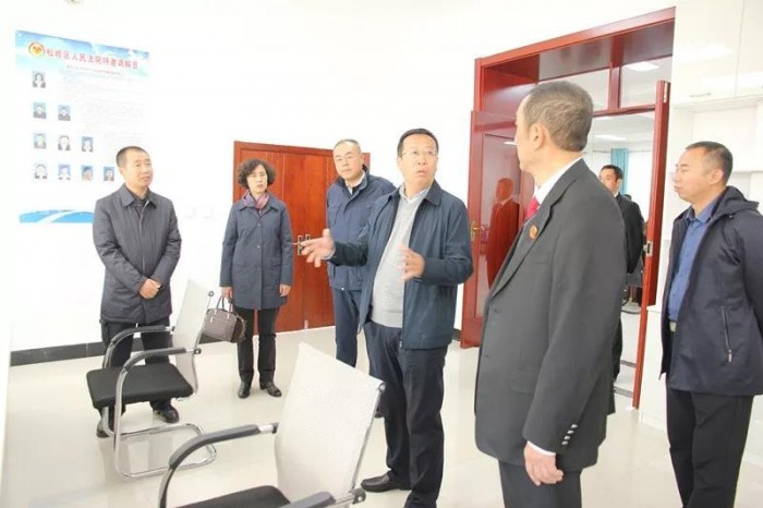 程显波在松岭区委区政府领导陪同下实地踏查了松岭法院诉讼服务中心、审判法庭、党建活动室、图书馆、执行指挥中心等办公场所,并与基层院领导班子和干警座谈,对松岭法院在建设科技法庭、改善干警办公环境、案件审理等方面工作给与充分肯定。