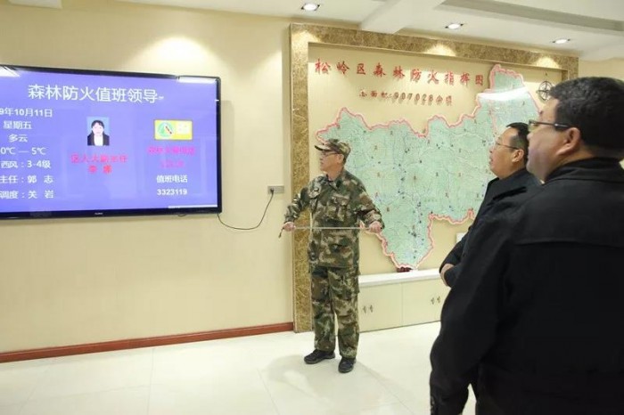 程显波到松岭区防火指挥中心,看望秋防值班干部,详细了解预警监测、火源管理、指挥扑救等工作情况,他希望松岭区以务实的作风抓好秋防工作,为全年森防工作取得全胜打下坚实基础。