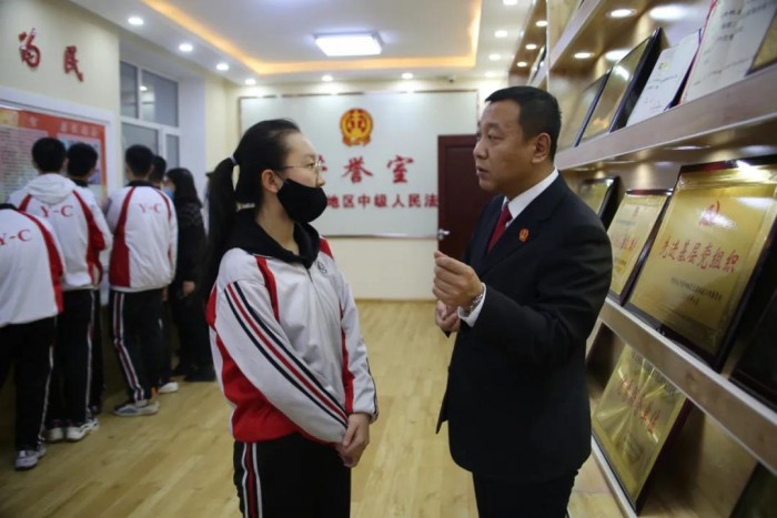 2月4日,在第七个国家宪法日到来之际,加格达奇区育才中学九年级五班的45名师生走进大兴安岭地区中级人民法院,参加第69次“公众开放日”活动。