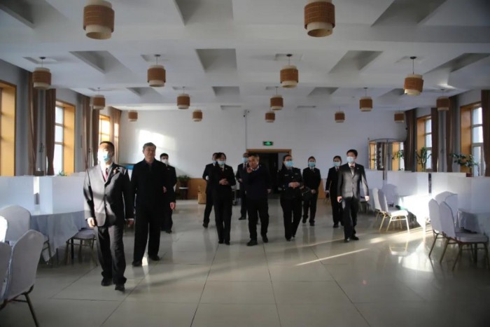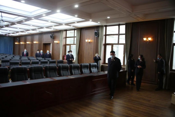在二楼大厅,大家参观了员额法官墙,听法治信仰之坚定,激昂澎湃。在司法文明之光文化长廊里,感中华司法之变革,气势磅礴。在执行指挥中心,大家观看了省法院实时轮巡的执行指挥系统,体验了电子操控的电脑升降台。张瑞良副检察长赞叹:这种信息化科技手段提高执行质效,上下联动配合更默契,信息化办案保障非常可取。在视频会议室,大家参观中级法院高清电子屏、特殊处理的吸音墙壁等会议保障设施,感受会场绝无杂音的现场音效,对法院司法保障工作的进步由衷赞叹。大家来到法院食堂餐厅及操作间,对疫情期间餐桌分隔就餐的模式和饭菜保温系统给予一致好评,张瑞良副检察长了解食堂分区就餐及后厨分功能区工作的方法之后表示:后厨人员分工明确,区域划分合理,前厅分区就餐干净卫生,更有利于疫情防控,这样的优秀经验值得我们学习借鉴。在诉讼服务大厅,大家认真细致地感受12368服务热线、缴费、咨询、跨域立案等窗口服务内容,体验便民自助服务区和当事人休息区。董宝双副院长介绍:这里是当事人到法院打官司的入口,一站式诉讼服务高效便捷、公开透明、便民阳光,展现出新时代人民法院司法保障水平的不断提升。随后,大家参观了荣誉室、科技法庭、体能训练中心、文化长廊、图书馆、民一庭办公区等,并就法院和检察院文化建设的优秀经验进行了交流。