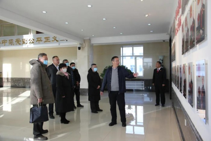 在大兴安岭中院,政协委员们参观了员额法官墙、司法之光宣传长廊、执行指挥中心、视频会议室、科技法庭、诉讼服务中心、图书馆等办公场所,并就诉讼服务、司法公开、审判执行、文化建设等工作进行了详细了解。