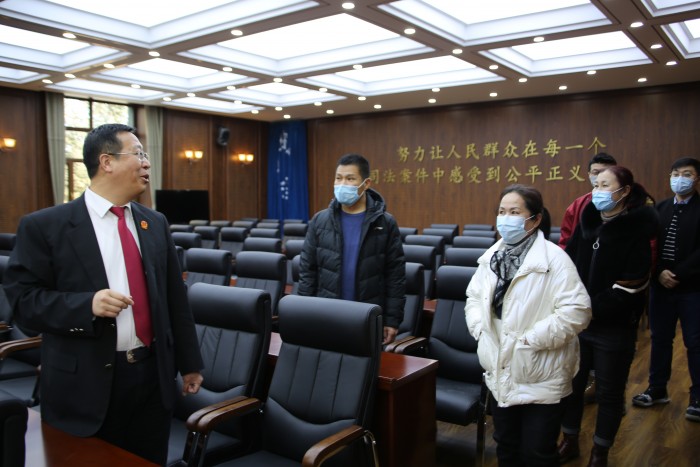 3月9日,大兴安岭地区中级人民法院开展了一次“特殊”的公众开放日,特殊是因为参观者是刚参加完中院队伍教育整顿第一次座谈会的人大代表、政协委员、律师代表、行政机关代表、案件当事人代表。而讲解员由中院党组书记、院长程显波亲自担任,带领各界代表参观法院。
