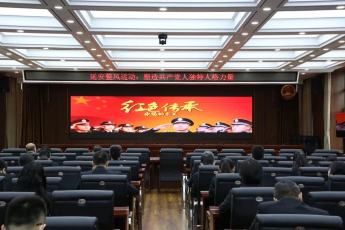 《延安整风运动:塑造共产党人独特人格力量》专题片让干警们了解到中国共产党理论联系实际、密切联系群众、批评和自我批评的三大优良作风的由来。懂得了中国共产党创造辉煌的真正秘密是学习。重温了80年前那场塑造中国共产党人独特人格力量的伟大运动。