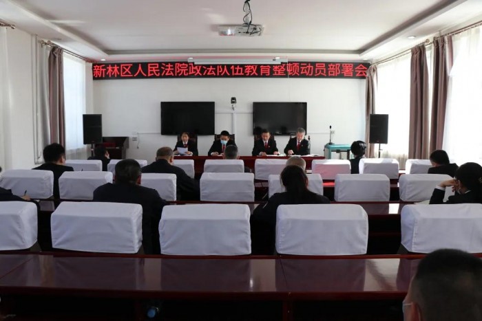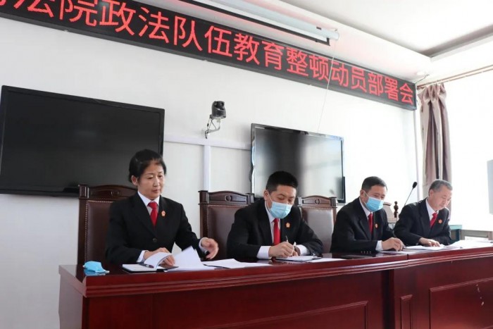 3月9日上午,新林法院召开政法队伍教育整顿动员部署会议。深入贯彻落实上级关于政法队伍教育整顿会议精神,进一步安排部署我院队伍教育整顿工作。副院长李青春主持会议,院长温津出席会议并作动员讲话。