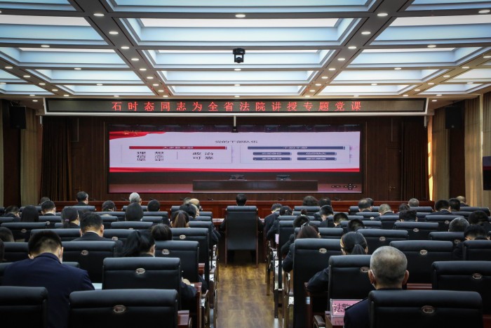 3月25日,省法院党组书记、院长石时态以《坚定崇高信仰 弘扬伟大精神 为全面建设社会主义现代化国家努力奋斗》为题,为全省法院干警讲授了一堂专题党课。党课思想深邃、内涵丰富,从坚定崇高信仰和弘扬伟大精神两个层面深刻解读了坚定崇高信仰、传承伟大精神的重大意义,充分阐述了信仰铸就忠诚,精神成就伟业的辩证关系。既立足于思想理论的宏观把握,又注重理论指导实践的微观落实,通篇充满了思想性、实践性和指导性,为全省法院积极开展政法队伍教育整顿提供了思想指引、方向指引。大兴安岭中院党组高度重视收听收看石时态院长讲党课,会前精心组织、周密安排,组织全体干警认真收听收看石时态院长讲党课。