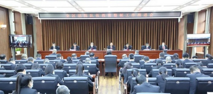 会议指出,在省政法队伍教育整顿第十三指导组、省法院以及地区政法队伍教育整顿领导小组的指导下,全区法院队伍教育整顿各项工作推进有序、措施扎实,学习教育环节规定动作落实有力,自选动作有声有色。省政法队伍教育整顿第十三指导组组长杨彤勇在检查指导中院队伍教育整顿工作时给予了高度评价,在全省法院队伍教育整顿第一次调度会议上,中院就队伍教育整顿开展情况进行了专题汇报,是汇报发言的四个中院之一,充分说明了省法院对全区法院队伍教育整顿工作的高度认可。