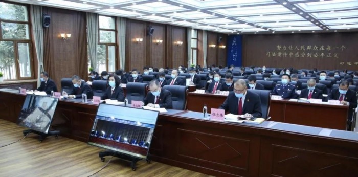 中院党组成员、地纪委监委派驻中院纪检组长、中院院领导及干警在主会场参加会议,各基层法院干警在分会场参加会议。