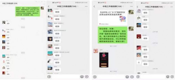为提高干警国家安全意识,营造院内浓厚宣传学习氛围,中院组织干警利用工作之余,积极参与答题活动,学习国家安全知识,增强防范意识,提升鉴别危害国家安全行为的能力。干警们切实感受到国家安全不仅关乎国家的兴亡,还关乎每个公民的利益,深刻意识到国家安全的重要性!