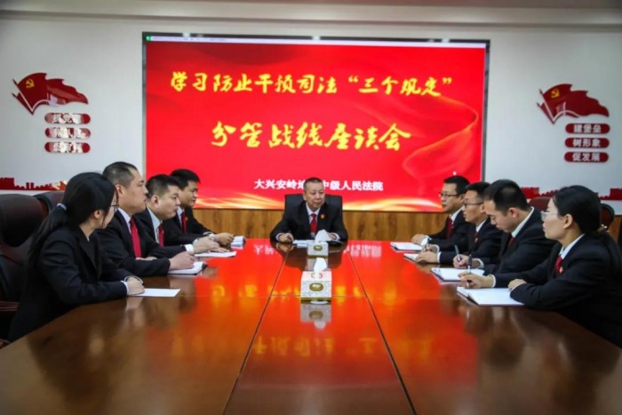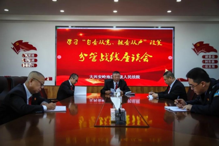 为确保队伍教育整顿查纠整改环节有效推进,让全体干警能够放下思想包袱,主动查摆问题,弘扬刀刃内向、刮骨疗毒自我革命精神,近日,大兴安岭地区中级人民法院各党组成员、院领导陆续召开分管战线学习“自查从宽、被查从严”政策座谈会和学习防止干预司法“三个规定”座谈会,进一步解读教育整顿期间适用“自查从宽,被查从严”政策,确保教育整顿取得长效实效。