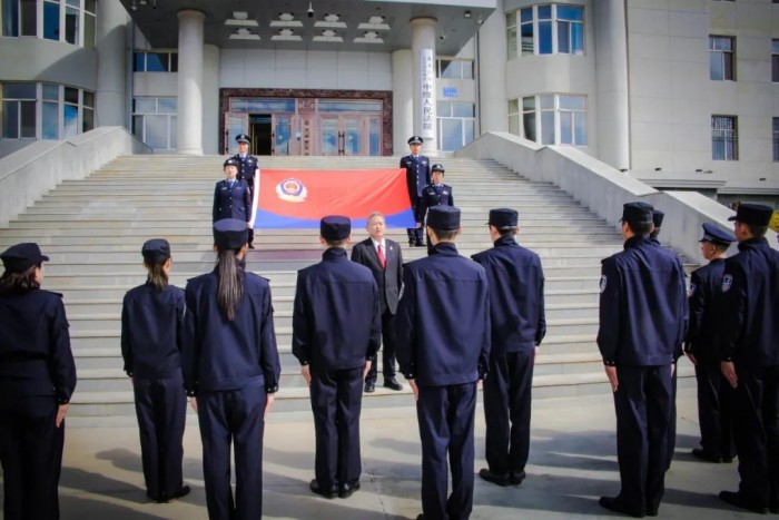 4月28日上午,大兴安岭地区中级人民法院司法警察支队在法院机关办公楼前举行了庄严宣誓仪式。