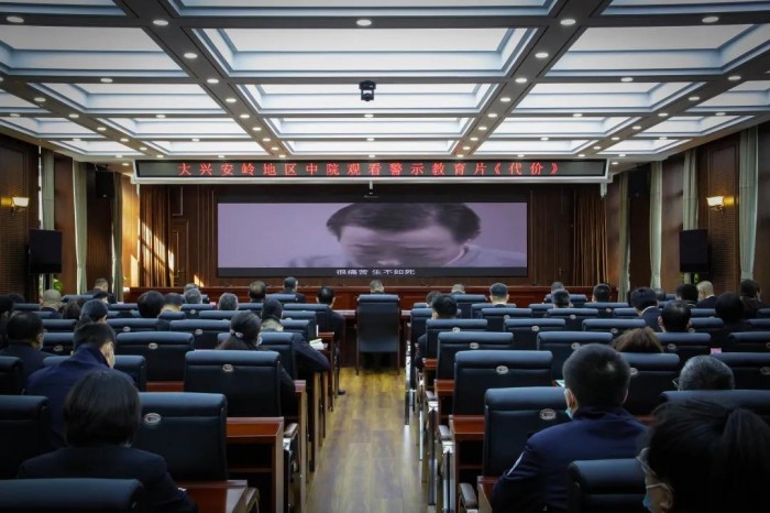 为进一步增强法院干警的纪律意识、规矩意识和拒腐防变的能力,充分发挥典型案例在队伍教育整顿中的警示教育作用,5月6日大兴安岭地区中级人民法院组织全院干警集中观看政法干警违纪违法警示教育片《代价》,通过直观、震撼、生动的案例为大家再次敲响警钟。