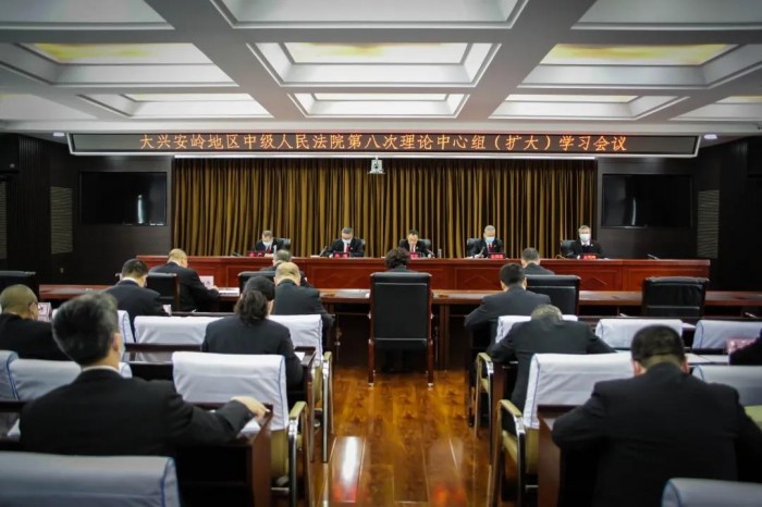 为推动党史学习教育和队伍教育整顿向纵深发展,5月12日,大兴安岭地区中级人民法院召开2021年第八次理论中心组(扩大)学习会议。