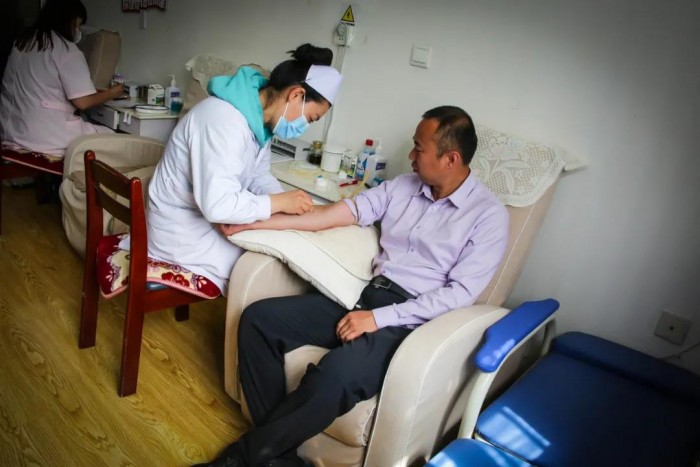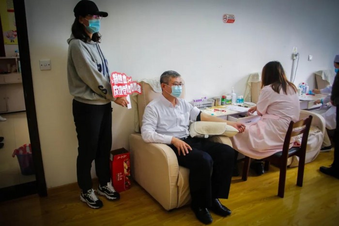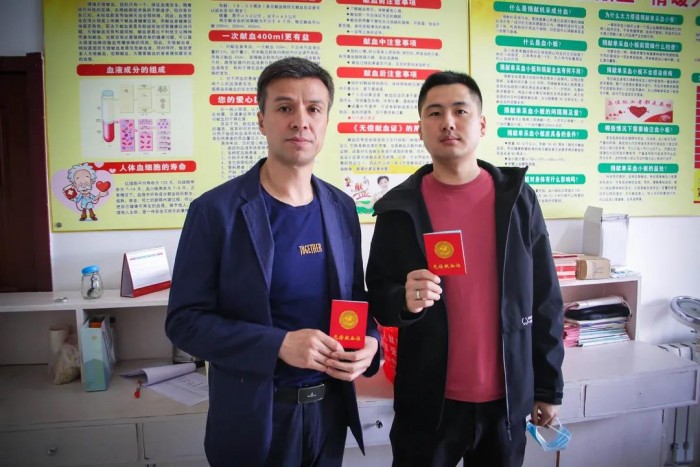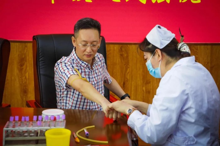 中院十余名志愿者在中院设置的采血点,进行验血采样。经过检验符合献血标准的同志来到中心血站进行了身体检查,依次有序配合医务人员完成采血工作。