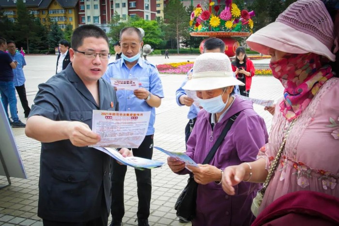 为切实开展好防范非法集资集中宣传月活动,不断增强人民群众对非法集资的防骗意识和能力,6月16日上午,大兴安岭地区中级人民法院刑二庭全体干警在新世纪广场开展了以“学法用法护小家·防非处非靠大家”为主题的防范非法集资宣传活动。