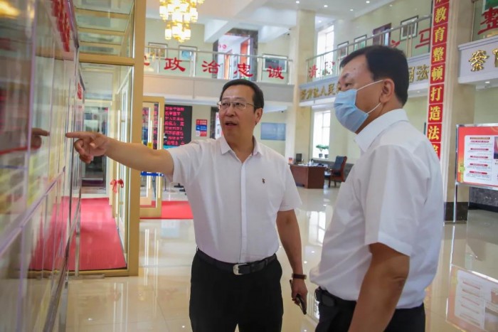 8月10日,大兴安岭地委书记张宝伟深入大兴安岭地区中级人民法院就政法队伍教育整顿、疫情防控等重点工作进行调研,地委委员、地委组织部部长姜海涛,中院党组书记、院长程显波及中院院领导一同调研。