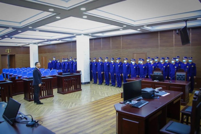 全体干部学员两个区队分批进行参观,在讲解员的带领下,大家先后参观了司法之光长廊、视频会议室、审判法庭、羁押室、荣誉室、体能训练中心、文化长廊、图书馆、在建院史馆等办公场所和基础设施,听取政法队伍教育整顿开展情况和全区两级法院概况、审判执行工作流程、重点工作开展等情况介绍,了解了法院依法履行审判职责、落实司法为民的各项创新举措。