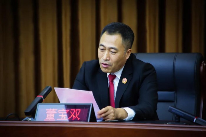 中院党组副书记、副院长董宝双主持会议。中院党组成员、各基层法院院长和中院全体干警参加会议。