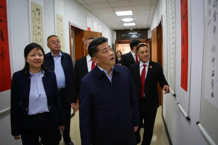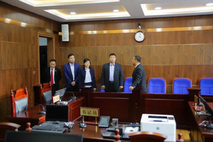 严明一行先后参观了司法之光长廊、视频会议室、审判法庭、羁押室、荣誉室、体能训练中心、文化长廊、图书馆、等办公场所和基础设施,听取政法队伍教育整顿开展情况和全区两级法院概况、审判执行工作流程、重点工作开展等情况介绍,了解了法院依法履行审判职责、落实司法为民的各项创新举措。在诉讼服务中心,严明副校长全方位了解了大兴安岭中院的智慧法院建设,观看了诉讼服务中心的数字化流程管理,体验了各项便民服务设施。严明表示,在这里感受到了“开放、动态、透明、便民”的阳光司法机制和“打官司不求人”取得的新成就,将进一步引导广大青年学生成为法律的忠实崇尚者、自觉遵守者、坚定捍卫者和模范践行者,带领全校青年学生为建设现代化新龙江提供坚实法治保障。