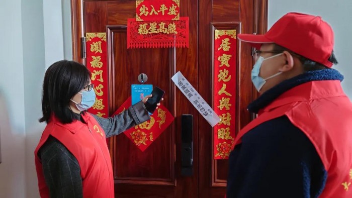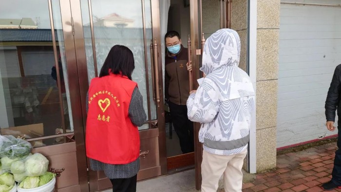 中院志愿者首先帮助曙光街道滨河花园小区两户居家隔离居民采买生活物资,为他们送去新鲜蔬菜、面条等生活物资,缓解他们实际生活困难。帮他们代收快递及更换封条,并主动询问身体状况,提醒他们注意进行健康监测。