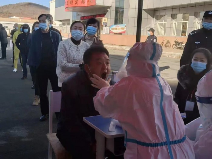 在三卡林场核酸检测点,赵松涛详细了解防疫物资储备、人员安排、检测进度等情况。赵松涛指出,当前疫情防控形势严峻,全体人员要保持高度警惕,严格落实上级防控工作部署,有序组织群众分批次、分时段进行核酸检测,避免人员聚集、等候过久现象发生。加强现场秩序维护,提醒群众守好“一米线”距离。进一步优化流程,加快采集进度,加强宣传引导,争取群众的理解和支持,确保“不漏一户、不落一人、应检尽检”。