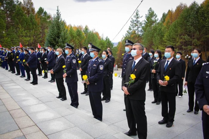 2021年9月30日是全国第八个烈士纪念日。上午十时,我区在加格达奇北山革命烈士陵园纪念碑前广场举行烈士纪念日公祭活动,大兴安岭地区中级人民法院20名干警作为地直机关代表参加公祭。