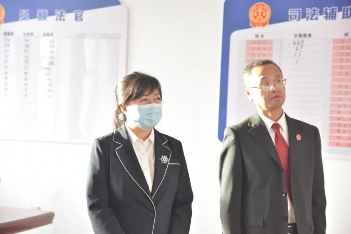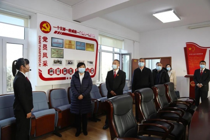 在呼玛县人民法院,于世伟查看了呼玛法院诉讼服务中心、审判法庭、执行指挥中心、党建活动室等办公场所,呼玛县委副书记包显亭参加调研。