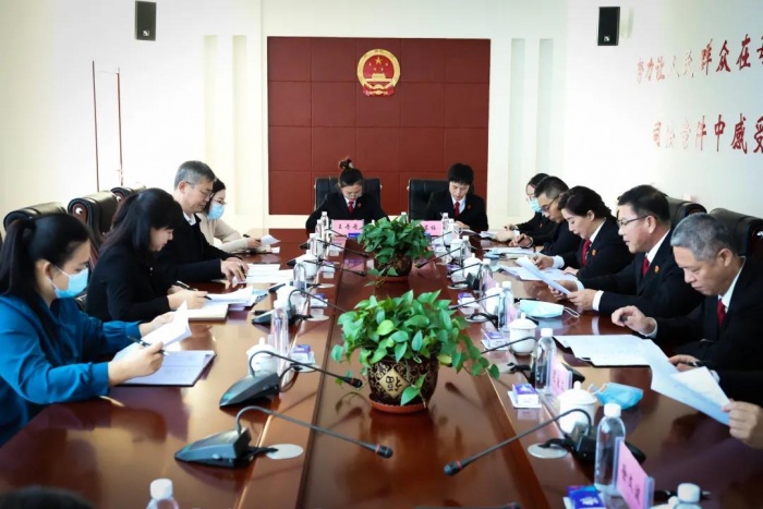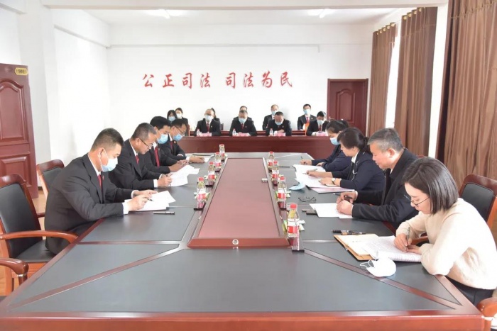 松岭法院党组书记、代院长王延成就松岭法院党建工作、队伍建设、审执质效、队伍教育整顿、党史学习教育和践行司法为民及下步工作打算等工作进行汇报。