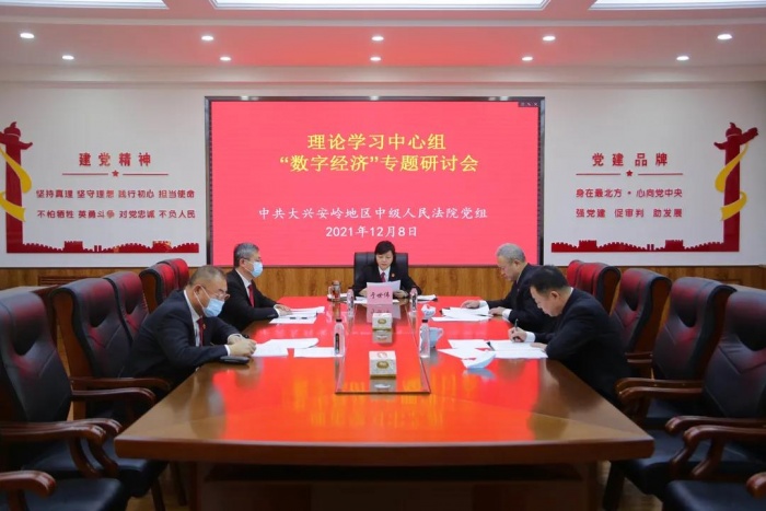 12月8日,大兴安岭地区中级人民法院召开理论中心组“数字经济”专题研讨会,党组书记、院长于世伟主持会议并讲话,中院党组成员参加会议。