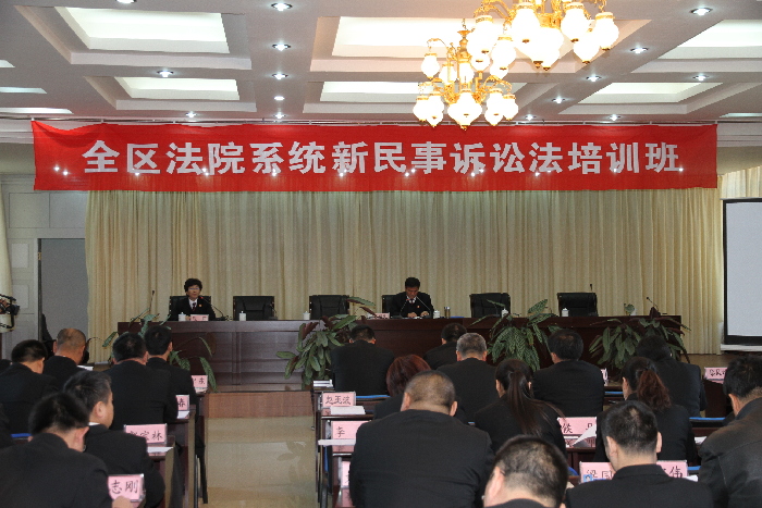 11月23日,全区法院新民事诉讼法培训班在加区开班,中院审判委员会员、立案庭、民一庭、民二庭、审监庭、执行局全体人员及基层法院主管民事审判工作的副院长或民庭庭长参加,地区中级人民法院副院长张瑞良同志亲自进行了授课。