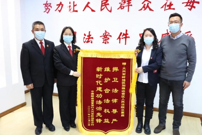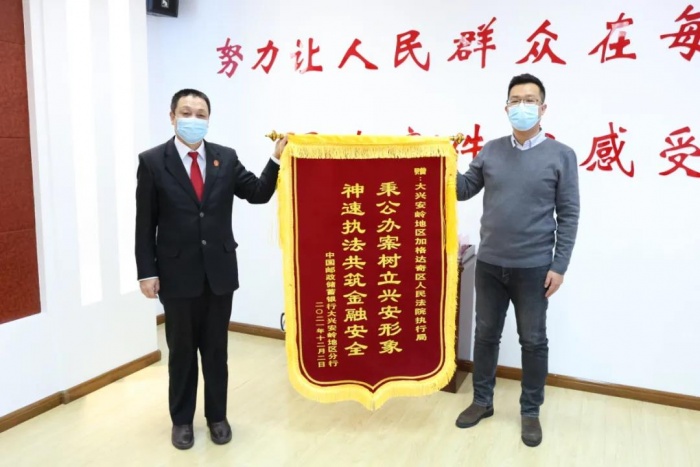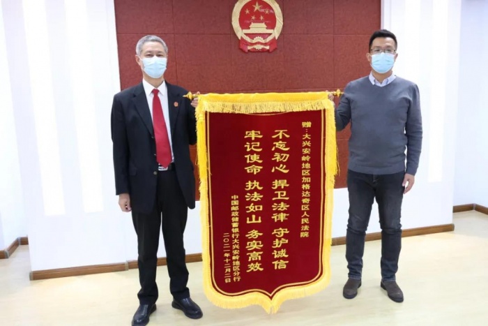 会后,各银行机构代表向加区法院赠送了锦旗,对人民法院在依法保护金融债权、防范化解金融风险工作中所做出的高效司法服务表示感谢。