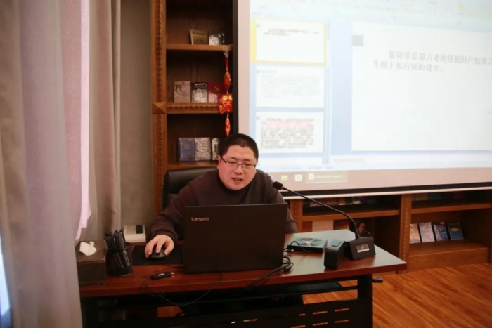 按照学习计划,1月21日,第五期活动如期开讲,由中院刑二庭庭长、一级法官谷新宇以《以“偷韭菜案”谈盗窃 》为题,同青年干警互相交流业务。