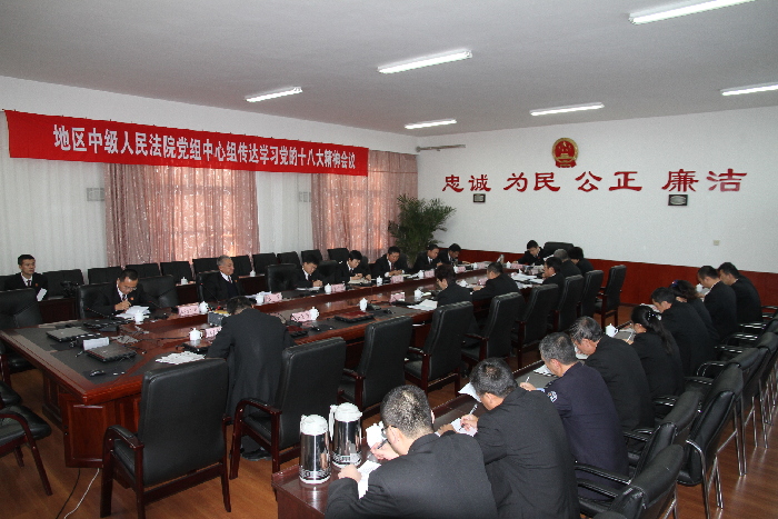 11月27日,地区中级人民法院进行党组中心组学习,专题学习党的十八大会议和地委第三次扩大会议精神,党组成员和所有中层干部参加了学习。