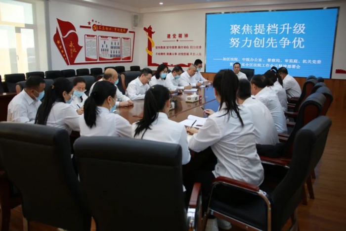 为传达全区法院工作会议精神、进一步贯彻落实《2022年推进五项重点工作实施方案》,确保将中院党组部署的各项工作落实落细,2月24日,大兴安岭地区中级人民法院党组副书记、副院长董宝双主持召开包片法院加格达奇区人民法院和分管条线贯彻落实全区法院工作会议精神部署会。