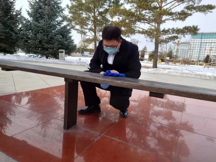 地区中院干警积极参加地直机关青年志愿者服务队公共设施清扫活动。干警们清理公园的长凳、健身器材,路边的公交站台等。因为温度还在零下,所以干警们用酒精进行擦拭,既防止结冰对公共设施造成的损坏,又起到了防疫消毒作用。