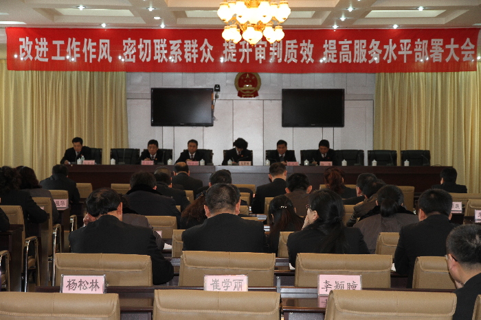 3月4日,地区中院召开了改进工作作风 密切联系群众 提升审判质效 提高服务水平部署大会,会上学习传达了《最高人民法院进一步改进司法作风六项措施》、《黑龙江省委 省政府关于改进工作作风、密切联系群众的规定》等文件。最后,中院常务副院长王丽梅同志对落实会议精神提出了具体的要求。