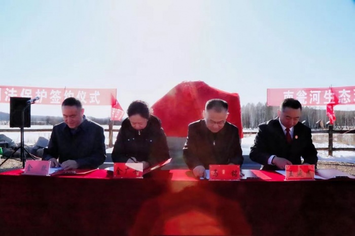 揭牌仪式开始前,松岭区人民政府、松岭林业局、南瓮河保护区管理局、松岭区人民法院四家单位共同签署了《生态环境司法保护工作联动协议》。