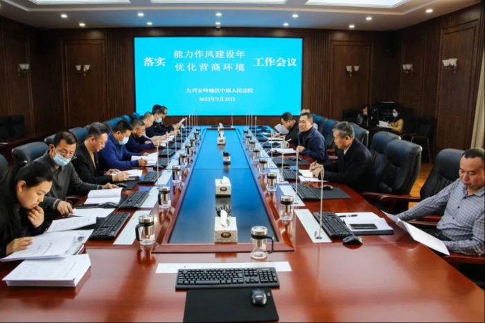 “能力作风建设年”活动开展以来,大兴安岭中院迅速行动、狠抓落实,严格按照省法院、地委部署要求制定实施方案、组建领导机构、压实工作责任。3月25日,大兴安岭中院召开落实“能力作风建设年”及优化营商环境工作会议,听取领导小组办公室工作推进情况的汇报,研究部署“能力作风建设年”及优化营商环境下步工作。党组副书记、副院长董宝双主持会议,中院班子成员、领导小组办公室全体成员参加会议。
