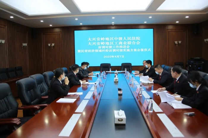 为不断运用法治力量提升营商环境,服务保障民营经济高质量发展。4月7日,大兴安岭地区中级人民法院与大兴安岭地区工商联召开诉调对接工作推进会,会上共同制定并签订了《关于开展民营经济领域纠纷诉调对接工作的实施方案》。中院党组成员、专审委张立伟,地区工商联副主席安静及相关人员参加会议。