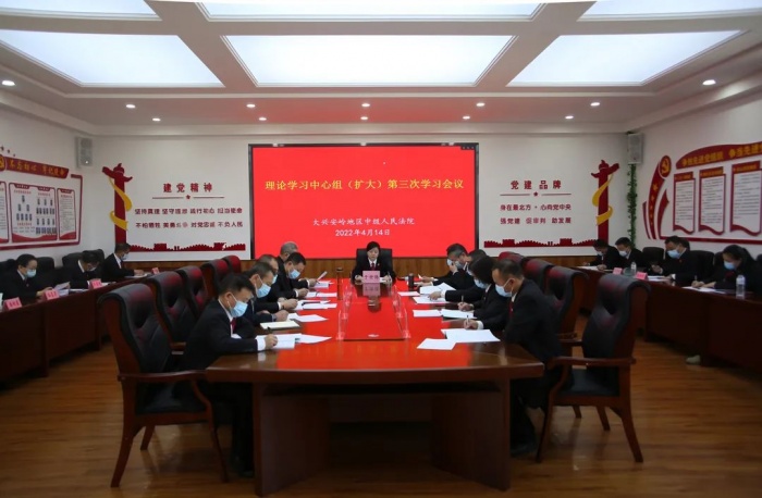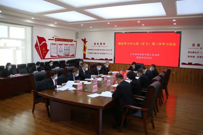 4月14日,大兴安岭地区中级人民法院召开2022年第三次理论中心组(扩大)学习会议。党组书记、院长于世伟主持会议,中院党组成员、院领导、中心组成员部门负责人参加会议。