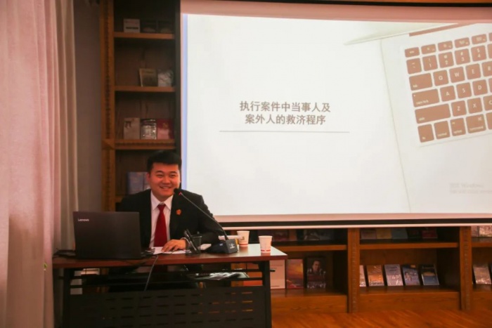 按照学习计划,4月22日,第十九期活动如期开讲,由中院执行局四级法官助理王若为以“解放思想振兴发展”建设学习型法院为主题讲述执行案件中当事人及案外人的救济程序,并同青年干警互相交流业务。